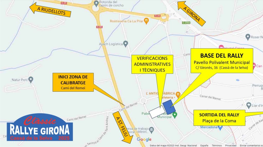 6è Rallye Classic Girona – Dorsals, horaris de verificació, mitjanes i plànol de Cassà. 20 de novembre de 2025 pista-i-rallye.com 6e Rallye Classic Girona – Llista Horari Verif 6e Rallye Classic Girona – Mitjanes Trams